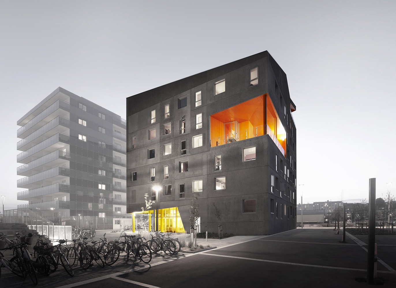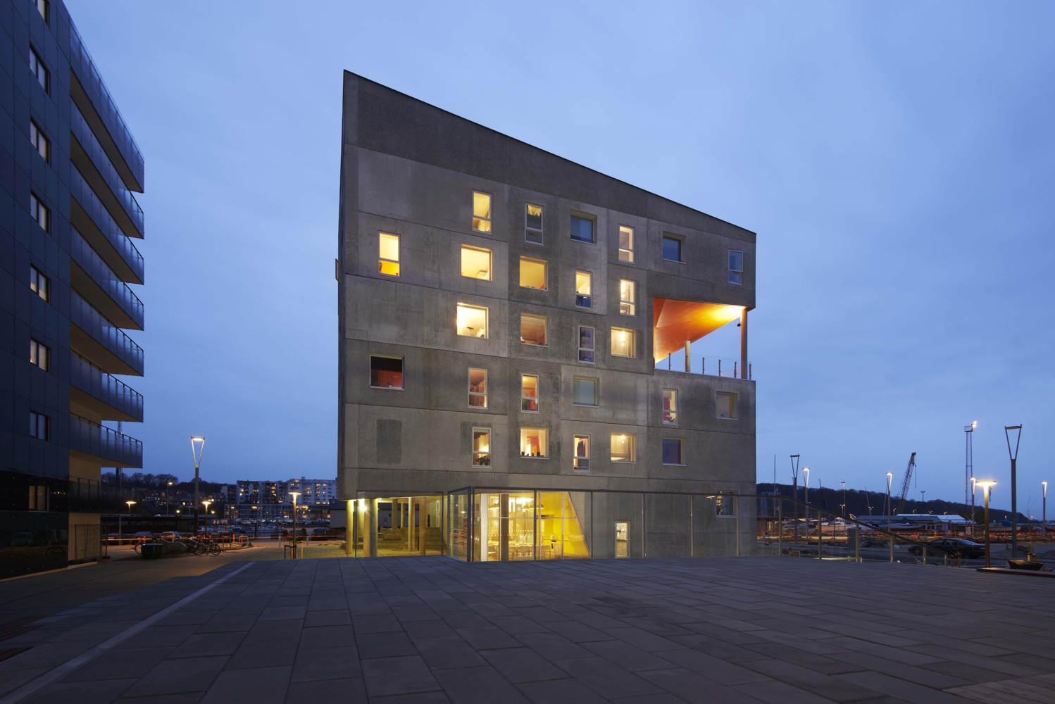 The building is part of a subsidised housing scheme intended for young residents who will make use of the recreational opportunities at this harbour, one of the largest in Northern Europe.