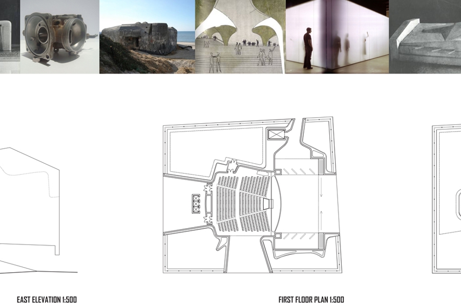 The lifting of the frosted glass curtain invites the citizens of Beirut into a space pregnant with opportunity. The edge of the skirt is lined in red such that the curtain of the theatre bounds the entire site. This key space does not exist in the brief but is that via which the building will avoid cannibalisation of the very thing it is set up to support. Shielded from the summer sun, this giant outdoor agora is both the meeting point between the city and the fuselage at the heart of the building – a moderator between the separate logic s of car and city which meet here. This is the booster in built form – a place that challenges the artists of Beirut to address it in new art forms and practices. Below the agora lies the gallery, embedded in the earth via its location insisting on public engagement. The rear of the agora is lifted to the freeway – a constructed undercroft which leaps toward and freeway and provides a space for outdoor cinema and performance events.