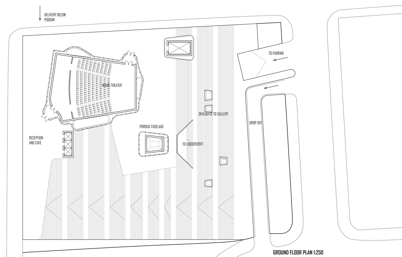 The ambiguity and opportunity of this space promises much for a House of Arts and Culture whose proponents understand that its conception risks the destruction of the very culture it is set up to support. Released from the constraints of typical urban rules and conformity, the choice of a site adjacent to the freeway is an inspired one, allowing the project to define its own territory. That this undercroft space is not fully understood holds hope that the building can break free of urban orthodoxies and meet its ambition as a booster for cultural activity that previously had no place it could call home.