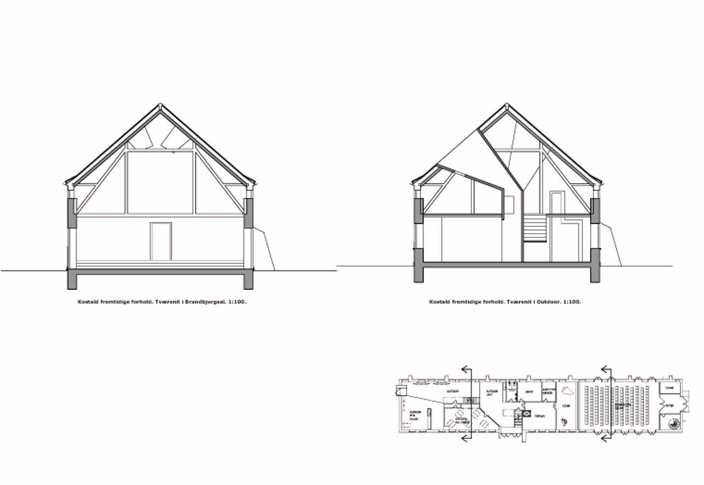 The existing building is re-connected to the context by a framing of three new openings where new and old meet and are presented externally. A new floor surface establishes a new datum for future activities and unfolds and transformes into stairs, shafts and other elements of enclosure.