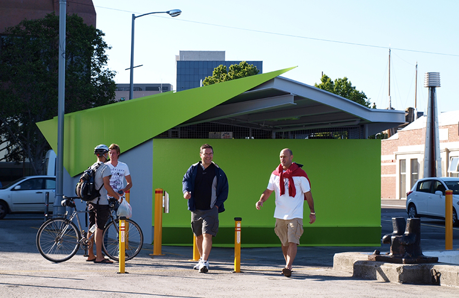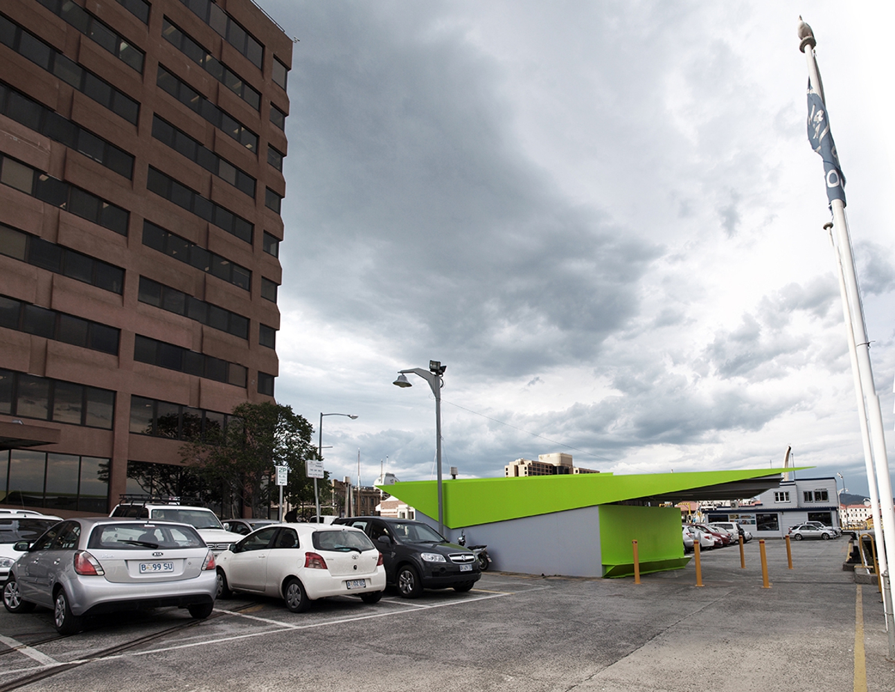 In 2009 TERROIR were engaged to upgrade facilities on Hobart's Franklin Wharf for the Sullivans Cove Waterfront Authority. The project was led by Melbourne-based landscape architecture practice Oculus. Part of this larger project was the modification to the existing Services Building in the forecourt to the Elizabeth Street Pier.