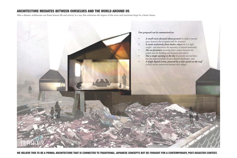 TERROIR have responded to an invitation from Akira Suzuki, Toyo Ito, Riken Yamamoto, Kengo Kuma and Kazuyo Sejima to provide an inspirational image for a "home for all" affected by the Japanese earthquakes earlier this year.