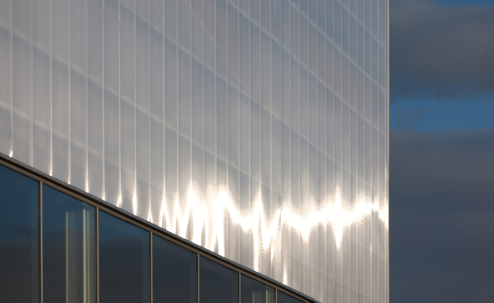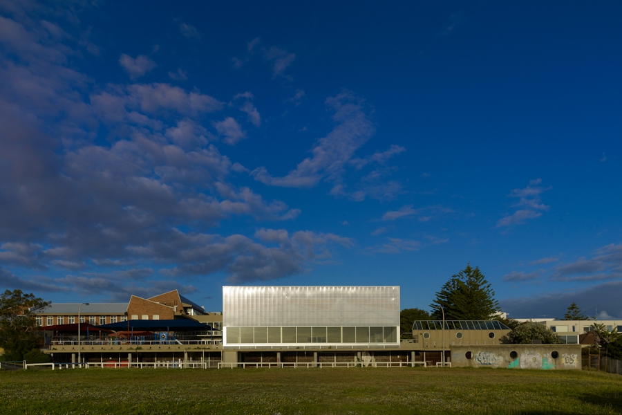 In addition to the view now afforded students playing in the new hall, the new building also acts as a "lightbox" which can be seen from up and down the coast. Thus, the provision of functional internal spaces has also resulted in a new identity for the school.