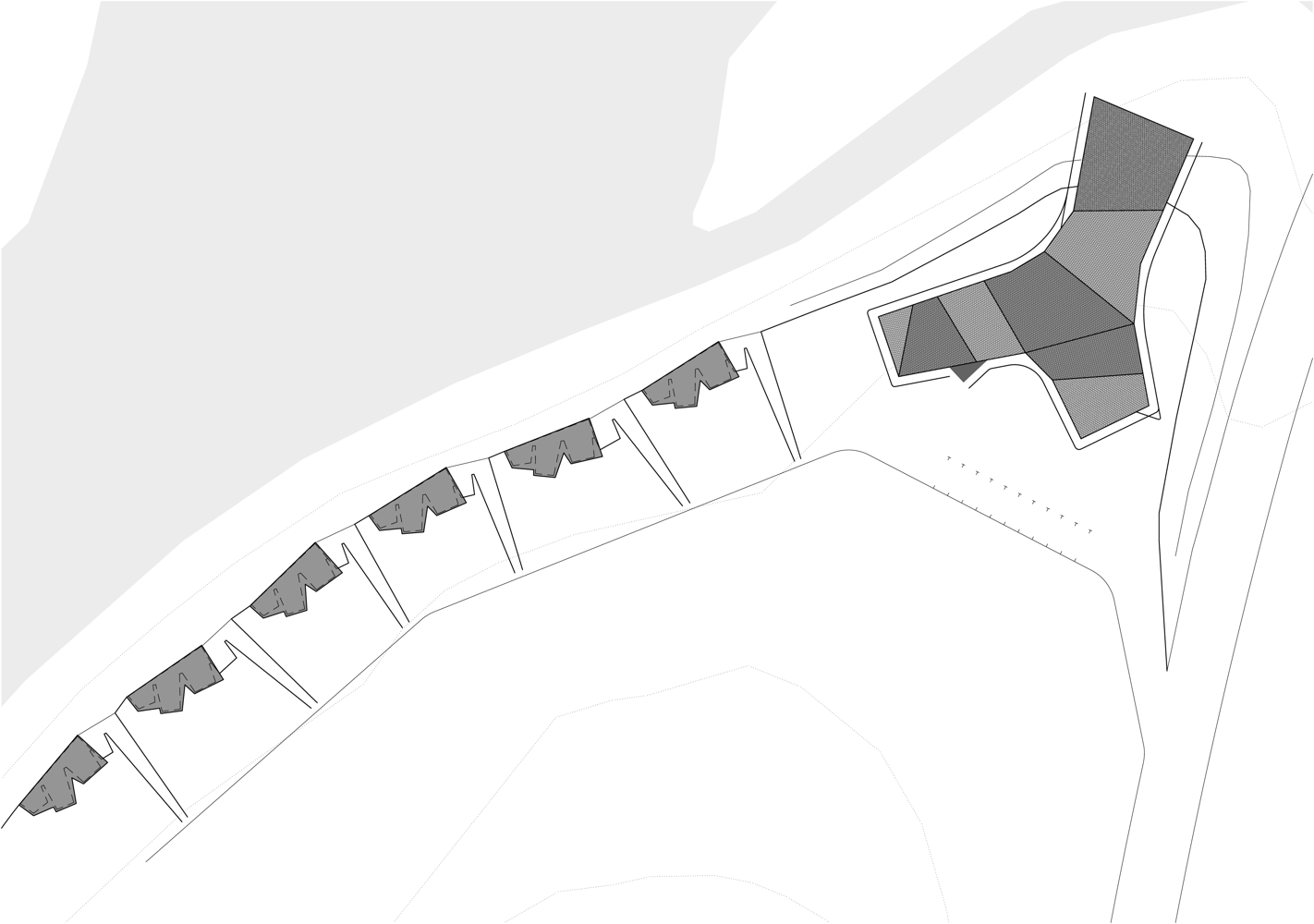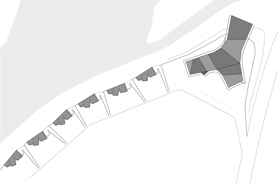The "basket" concept emerged from an observation that cuttings from the common fruit trees are often used for fencing. In this proposal the “twig” cuttings are deployed in a horizontal arrangement forming a continuous external skin to the building which constitutes the basket. The building’s interior will be awash in dappled light through the permeable basket perimeter, except for key moments when the skin is peeled back or spaced apart to acknowledge key vistas.