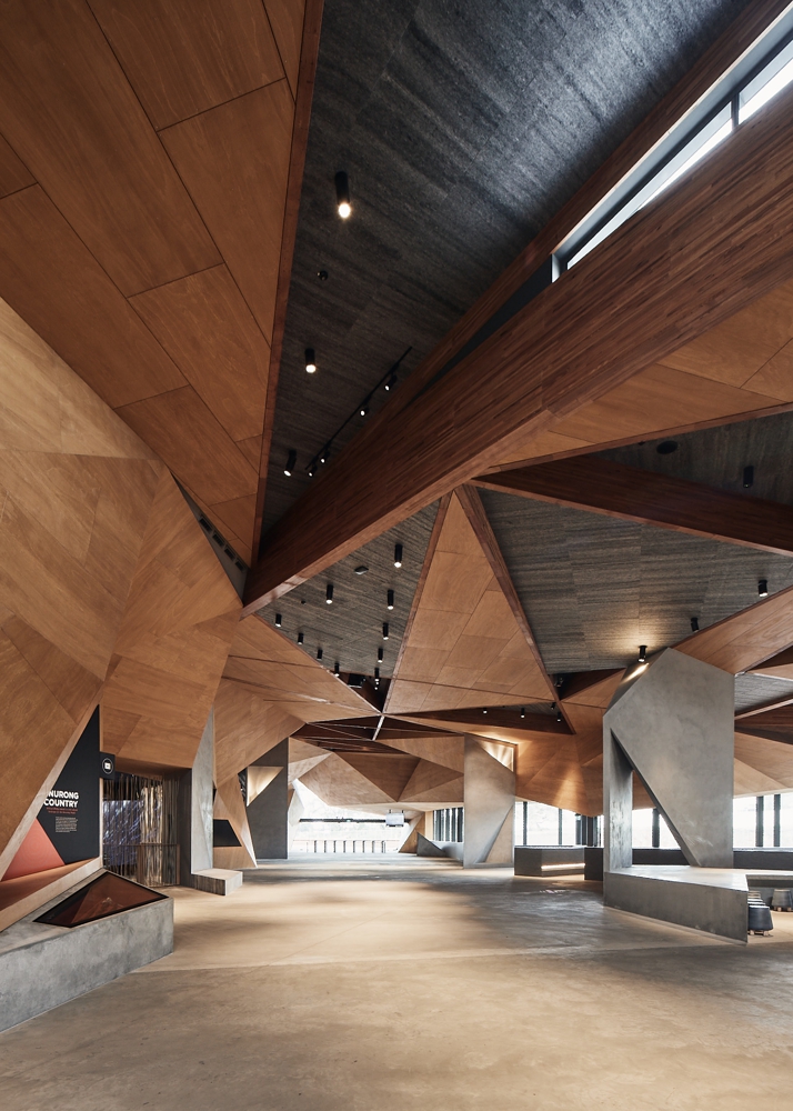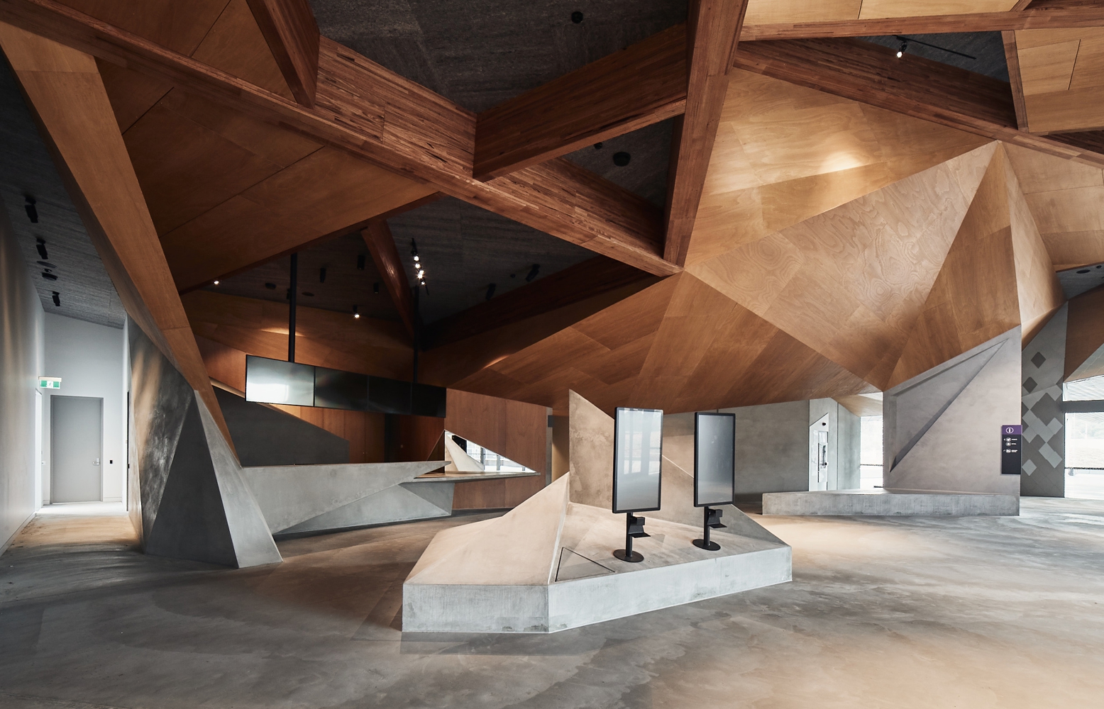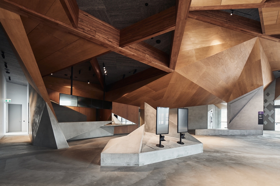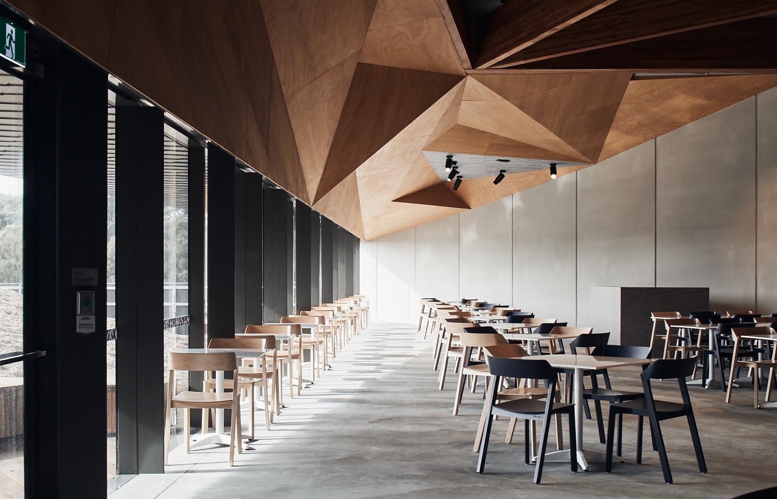 This tough exterior is complemented by an equally robust interior consisting of exposed timber structure and plywood panels that, as with the exterior, and self-finishing materials with integral colour and texture. The interior is structured around a major circulation path that has the capacity for large crowds and which forms a spine off which are arranged a series of dedicated spaces for ticketing, education, retail and restaurants. Between the central spine and discrete functional spaces is a layered edge condition of unprogrammed and indeterminate “third spaces” which enable individual experience and interpretation that responds to these 3 landscapes and the penguin experience.