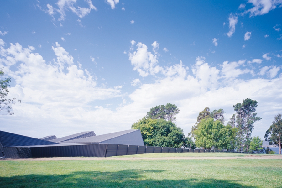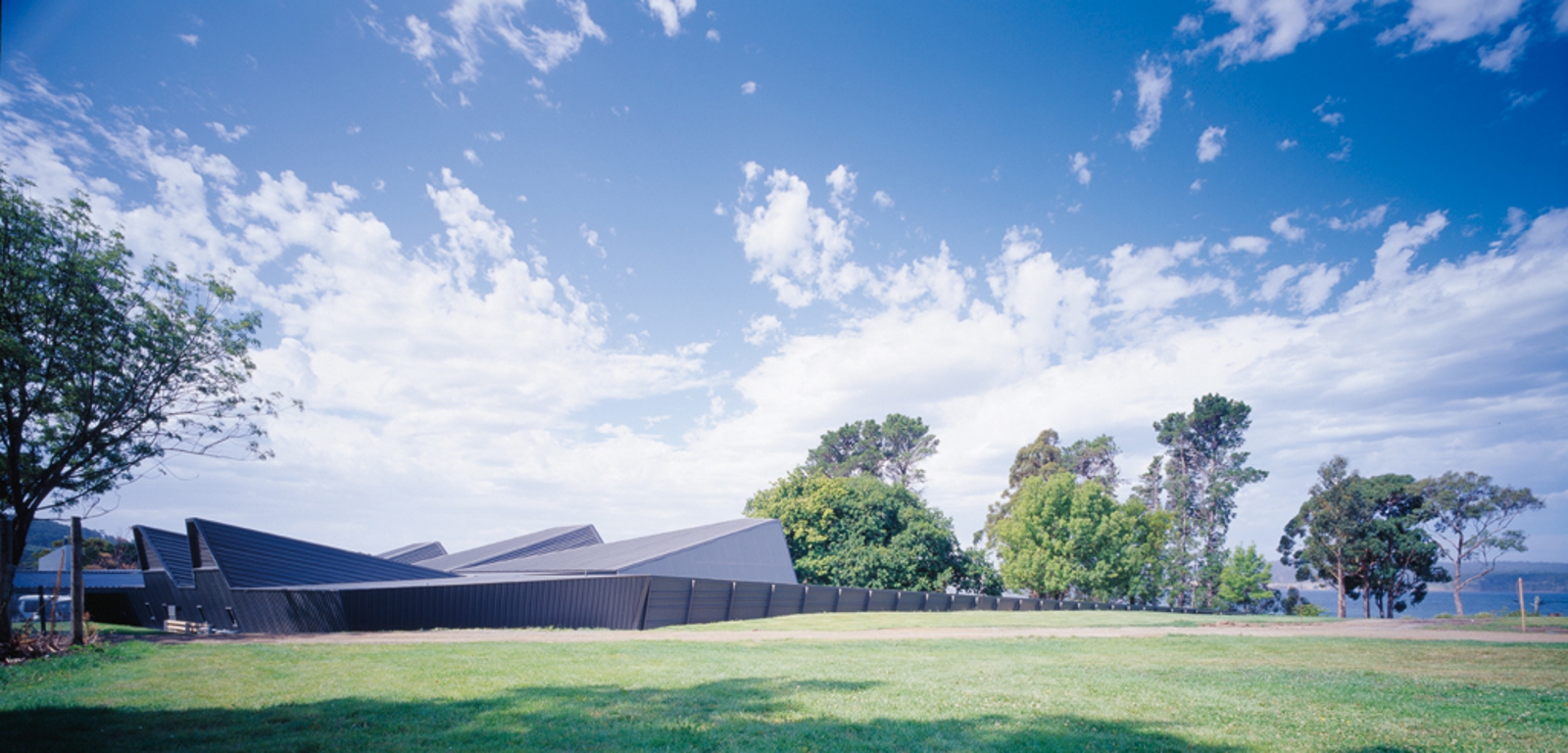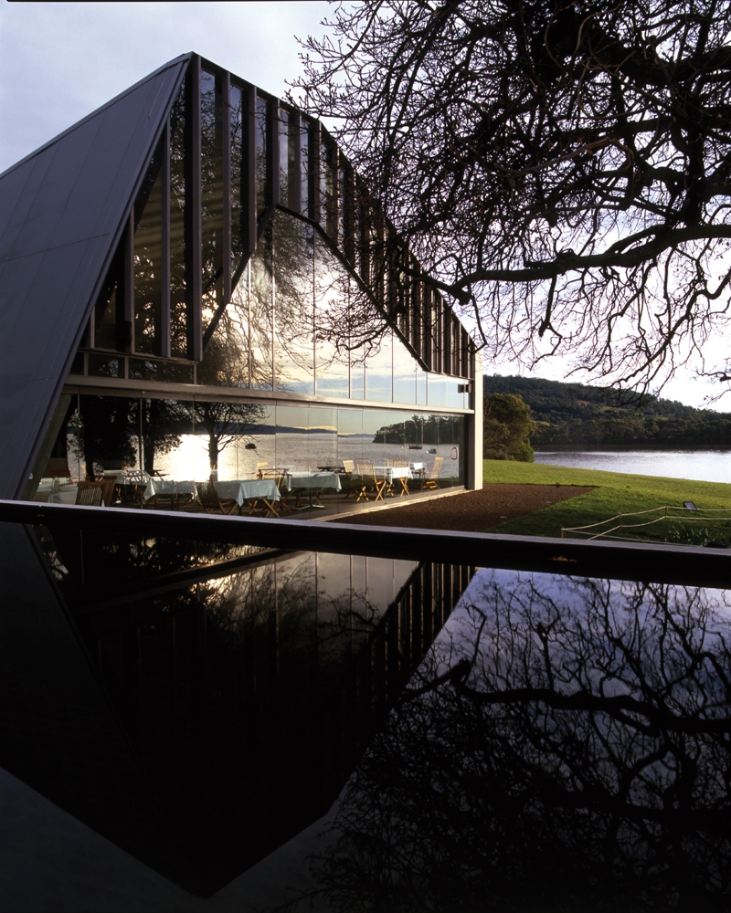 The front of the roof plate opens to a complex glazed wall between the public spaces and views beyond and provides an overall form and facade pattern responsive to this unique Tasmanian setting. At its most focused engagement - with the oak tree that sits at the centre of the building geometry - the work of C.D Freidrich and Munch (and the links between these works as outlined in Rosenblum) is recalled in the frontal engagement with this element.