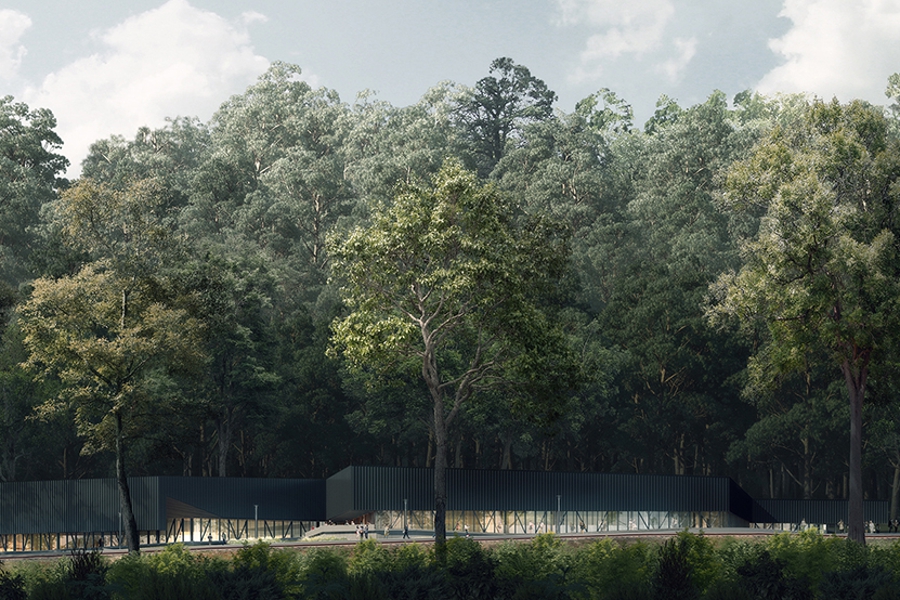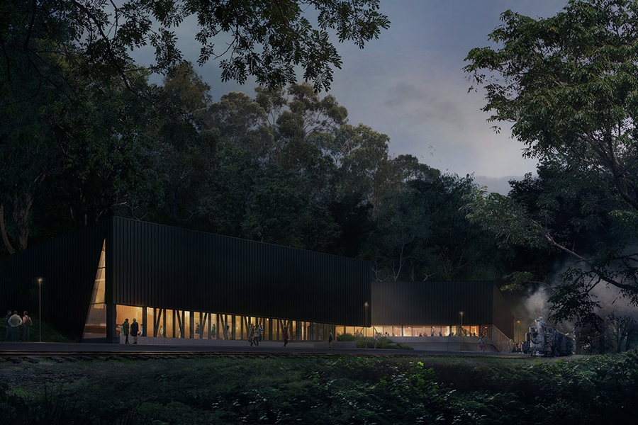 TERROIR were shortlisted from an open tender as one of five firms to compete in a design competition, which we won in late 2018. Our strategy was to focus not on building a "novel" visitor centre as a new attraction, but rather we focused on the existing railway line and platform - creating a visitor experience anchored within the authentic sights, smells and sounds of the railway. We also responded specifically to the two unique landscape contexts, working with our landscape team at Tract Consulting to stitch together the bushland uphill of the project and the contrasting European park landscape in front.