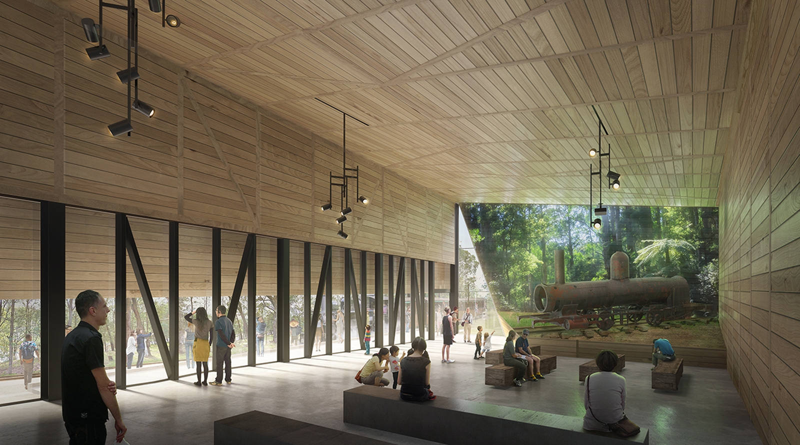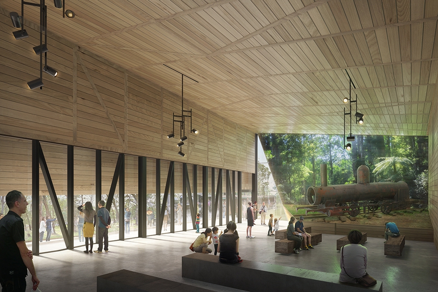 The complex brief resulted in a building larger than any that would have historically been located on the railway line. The decision was therefore made to insert a new geometry and spatial experience different to the smaller old stations, but one that still depended on the relation between visitors and the platform for its organisational logic. The project brings together train enthusiasts and local park goers, creating a unique tourism amenity offering which collects the many users of the site in a single but complex building.