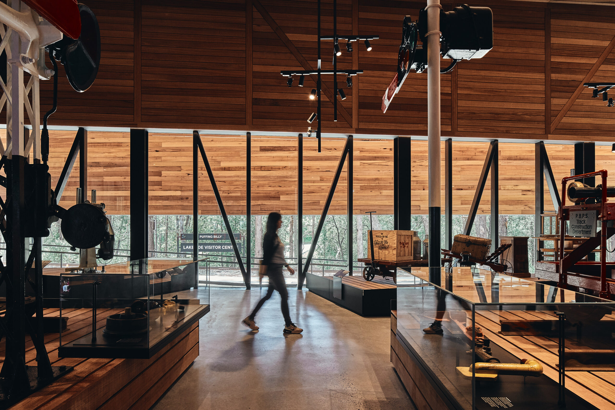 The iconic Puffing Billy Railway is a much-loved tourist attraction located within the Dandenong Ranges, 40 kilometres east of Melbourne. Emerald Lake Park is a scenic destination for many, centrally located on the railway. The importance of this stop on the railway was recognised with the decision to build a new Discovery Centre consisting of a café, commercial kitchen, visitor information services, interpretations, function rooms, staff offices, retail, educational facilities and amenities. The project brings together train enthusiasts and local park goers, creating a unique tourism amenity offering which collects the many users of the site in a single but complex building.