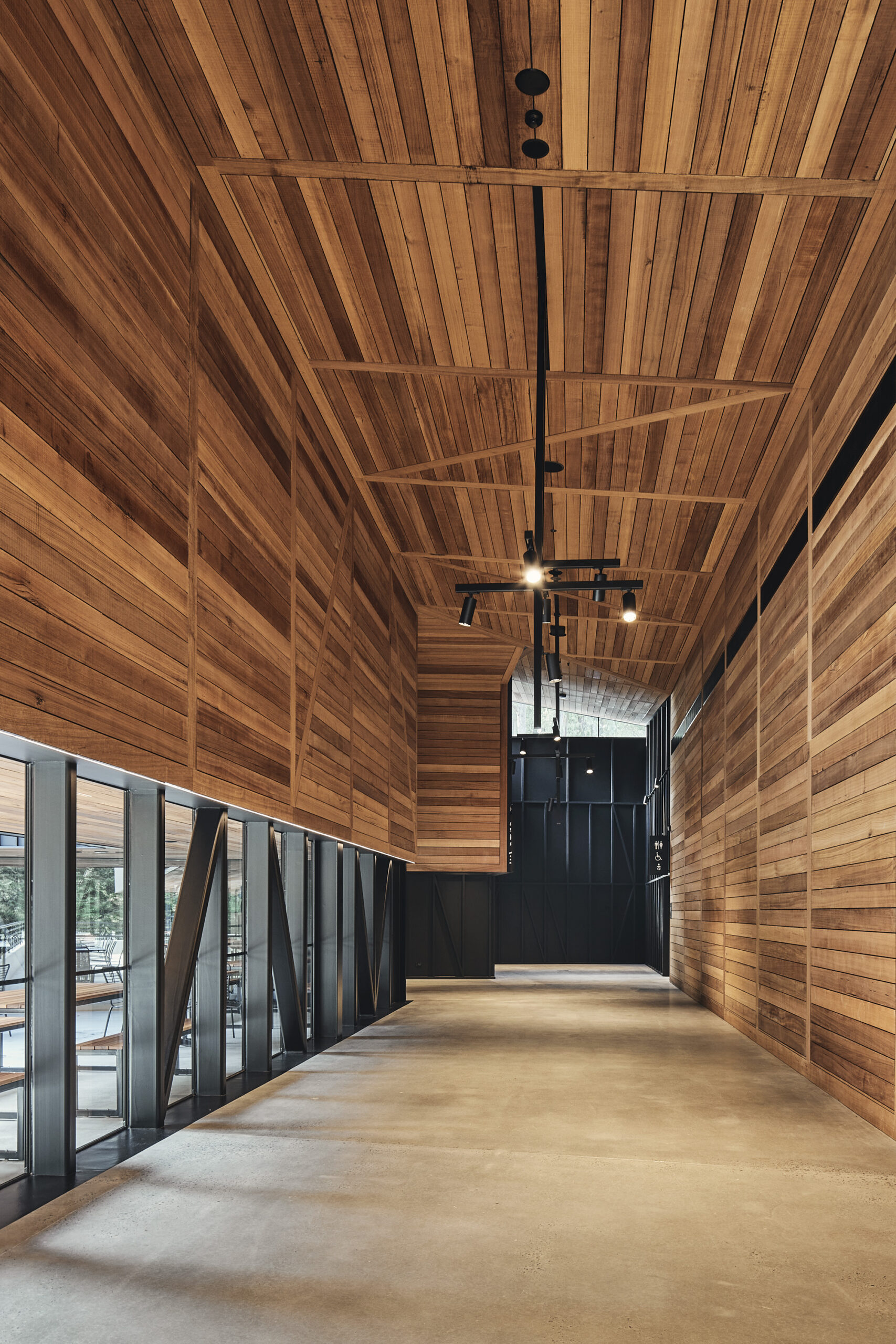 Internal iconography: trestle bridge Discovery becomes the experience that ties everything together along and uninterrupted discovery space that is inspired bu the long winding trestle bridges that are so important for the Puffing Billy image and experience. This space structures a journey that constantly reveals the park and bush dimensions of Lakeside. A warm timber interior (recalling the bridges) houses a drastic train and local fauna installation along its entire length. The discovery space also becomes a meeting point between visitors and the many committed volunteers.