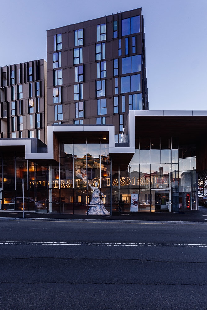 The University of Tasmania's new student housing project - considered a major strategic project both for the University and the city centre of Hobart where it is located, was designed by TERROIR in association with Fender Katsalidis Architects (FKA).