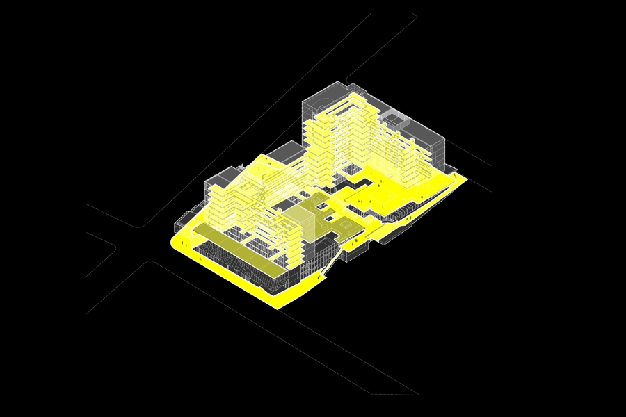 The leanness of the equation meant that the inevitable outcome would likely be a series of blocks with units arranged along internal corridors, like a standard hotel. TERROIR and FKA were interested in exploring how the design could build off this basic circulation provision in order to achieve a more nuanced and elaborate spatial arrangement, which could also provide unforeseen social opportunities.