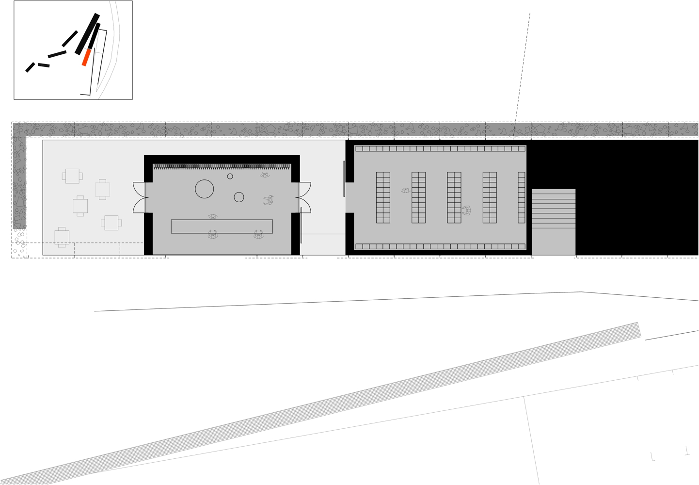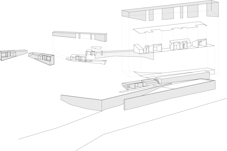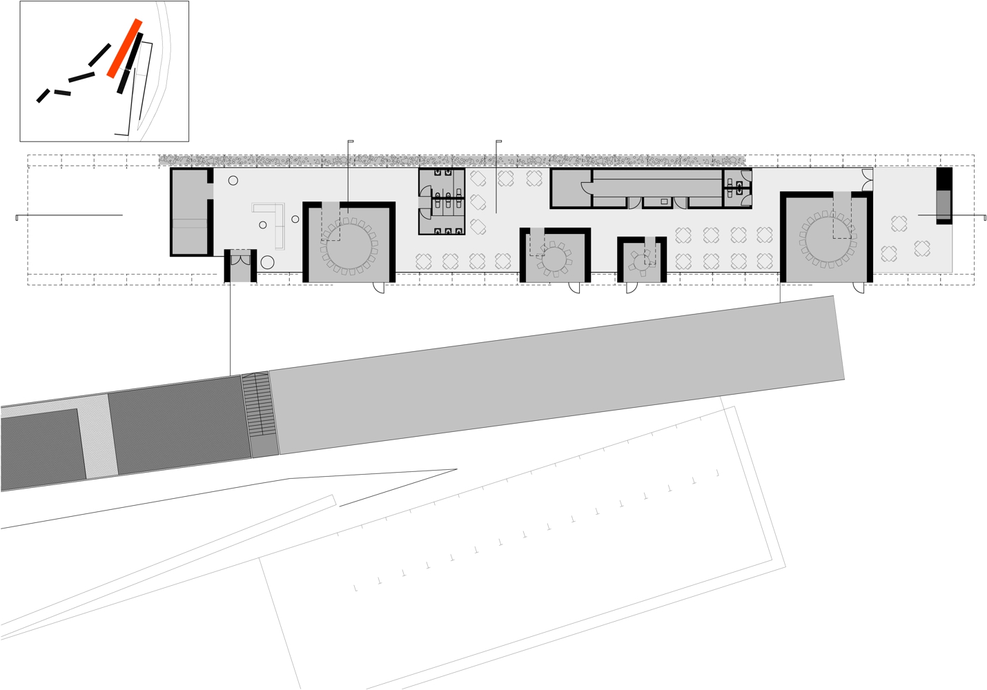We looked to the fundamental character of the site – the rock-wall terracing method of subtly changing the landscape – to inform this proposal’s primary architectural element of gabion-basket enclosures. With these cages of loose-stacked stones we have established a commonality between the new and unfamilar and the old patterns and practices extant at the site.