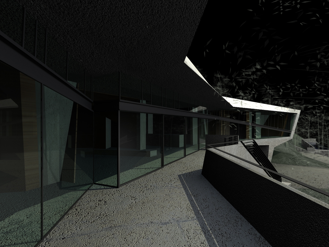 These linings are further embellished with a number of steel, brass and mirror inserts that are like devices or instruments that start in the practical requirements of occupation, given their basis in linings, benches, windows and skylights. The common thread through each instrument is the further diffusion of the concrete container both physically (in fissures and pockets that increase its porosity) and perceptually (through mirrors, skylights passing through all levels, openings that limit acoustic privacy) that serve to mentally expand the scale of the building. In every case, the instruments serve to intensify the relation between the occupants and landscape so directly established by the primary concrete form.