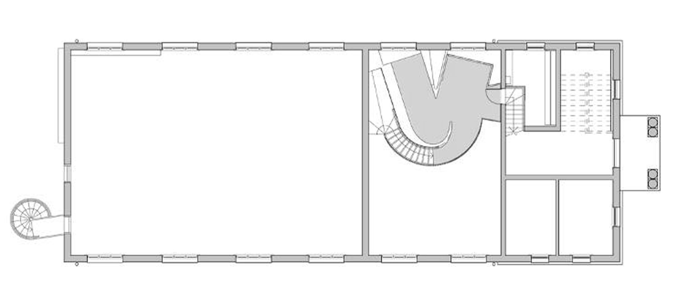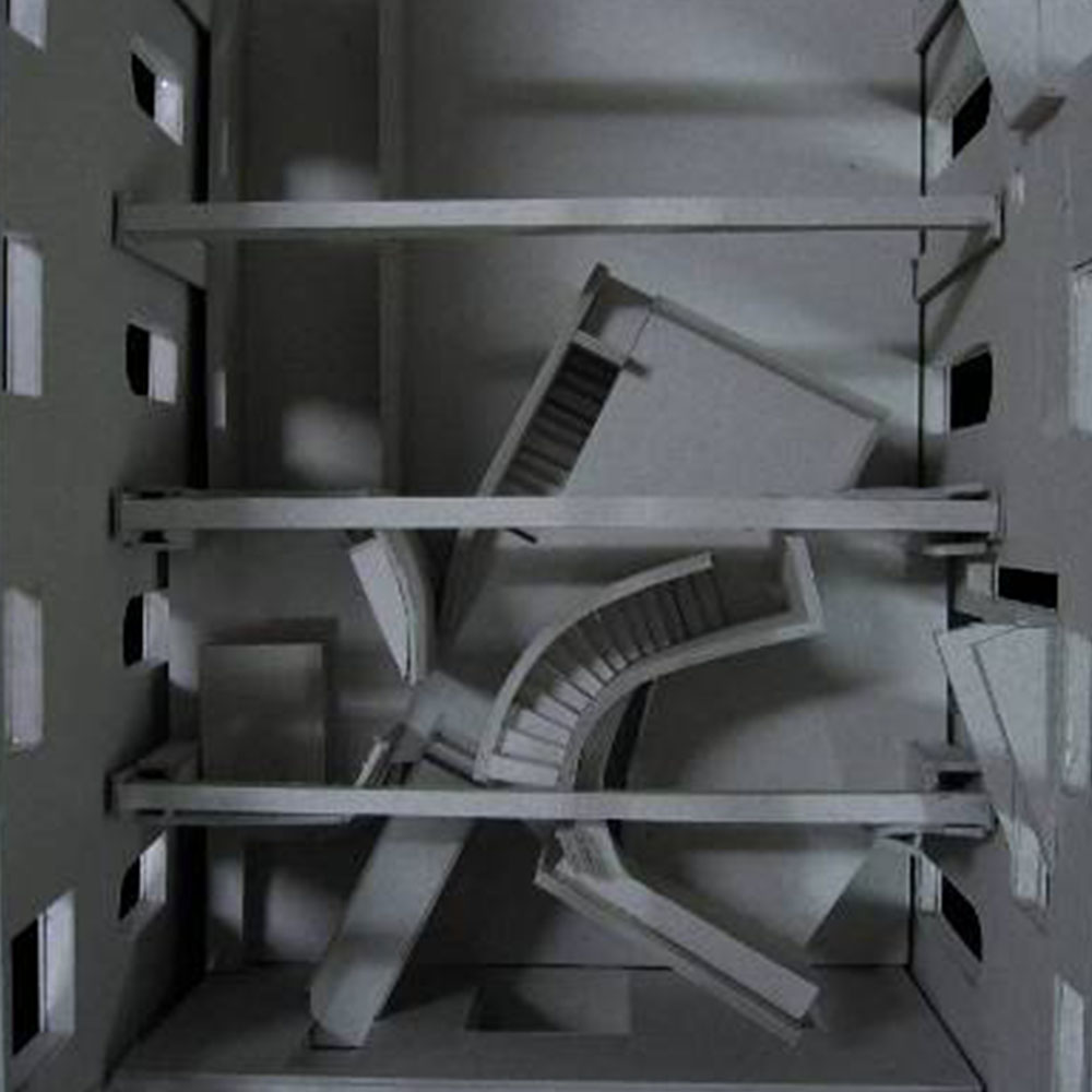 The new occupation of this building in a residential mode significantly changes both the pattern and type of use of the site. The landscape is gathered up into a vortex that presses into the building, while inside, a series of nested spaces address issues of scale and occupation. These interiors operate like Russian dolls, or alternately the finely tailored clothing worn by the client, with interior linings that speak of an alternate exterior. As with this clothing, the insertions into the existing building take the occupant further and further into an embedded interior until, in a moment of unexpectedness, they press against the exterior and break through to the garden.