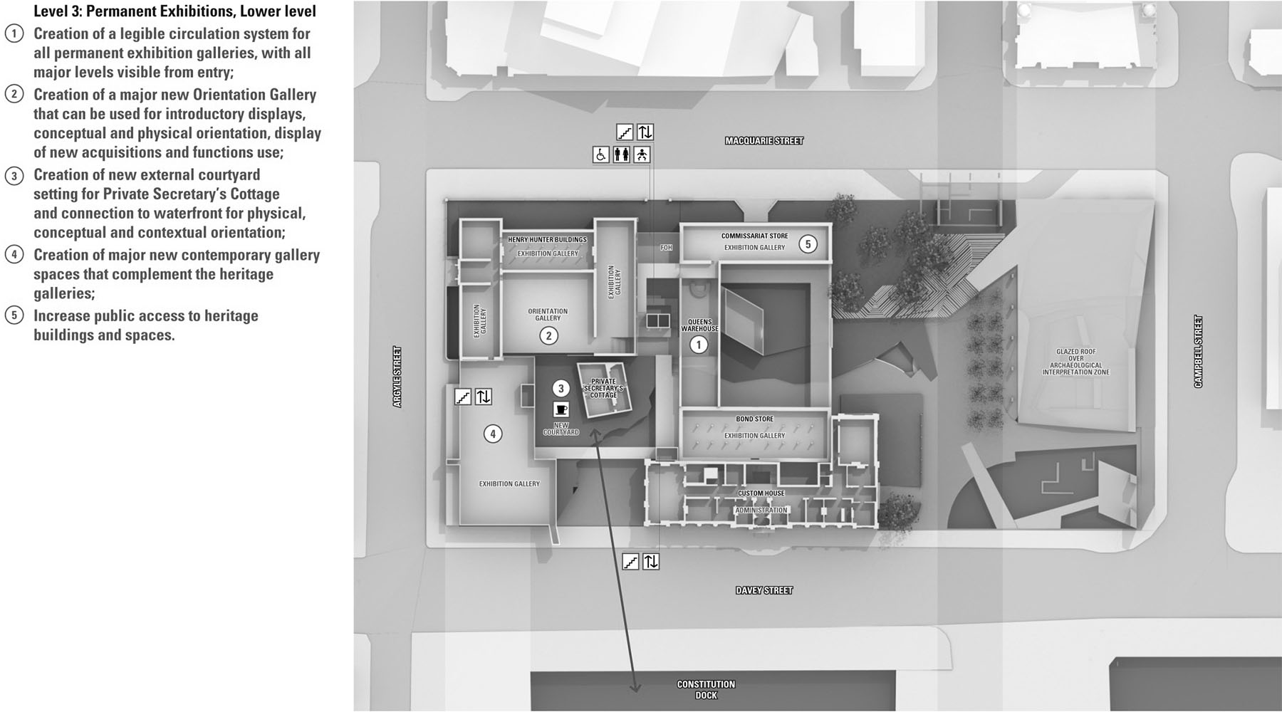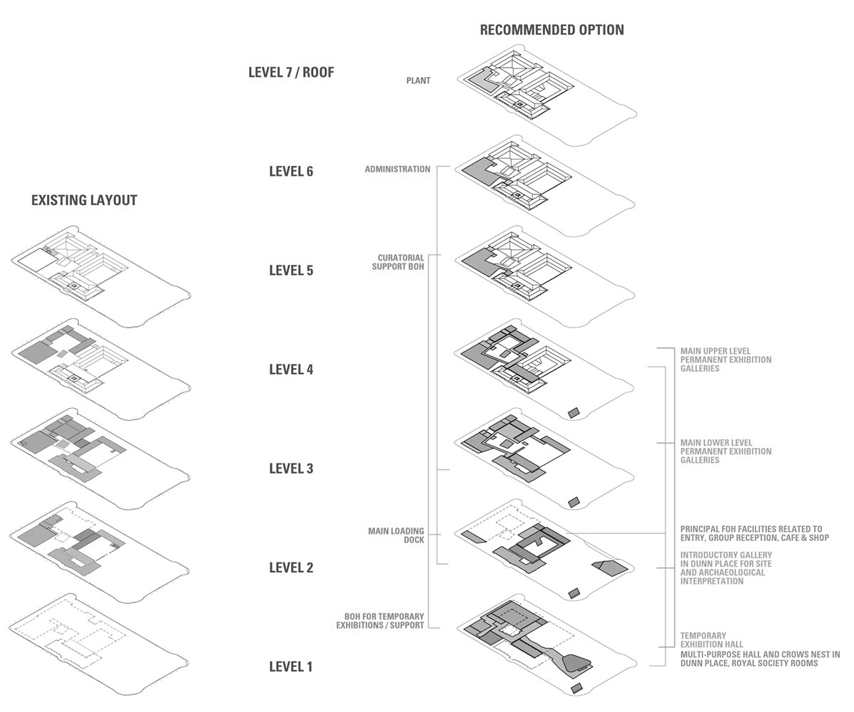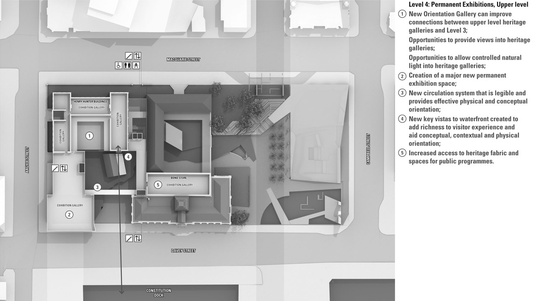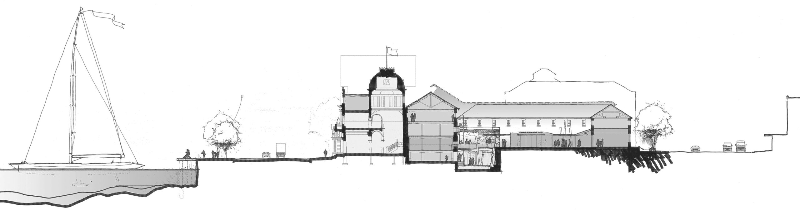 Starting with the collection which includes Australia’s finest collection of Colonial paintings, the only significant collection of Indigenous Tasmanian artefacts, and significant items from the state’s industrial heritage – key themes and points of significance were found to intertwine them on site in a poetic way. Then, in the context of the building stock – which includes Australia’s first purpose built art gallery, the oldest standing building in Australia and an archaeological site with significant indigenous material – the collection could be be unfolded in a meaningful way. In more pragmatic terms, all this could occur while addressing the needs of a contemporary institution of this type .