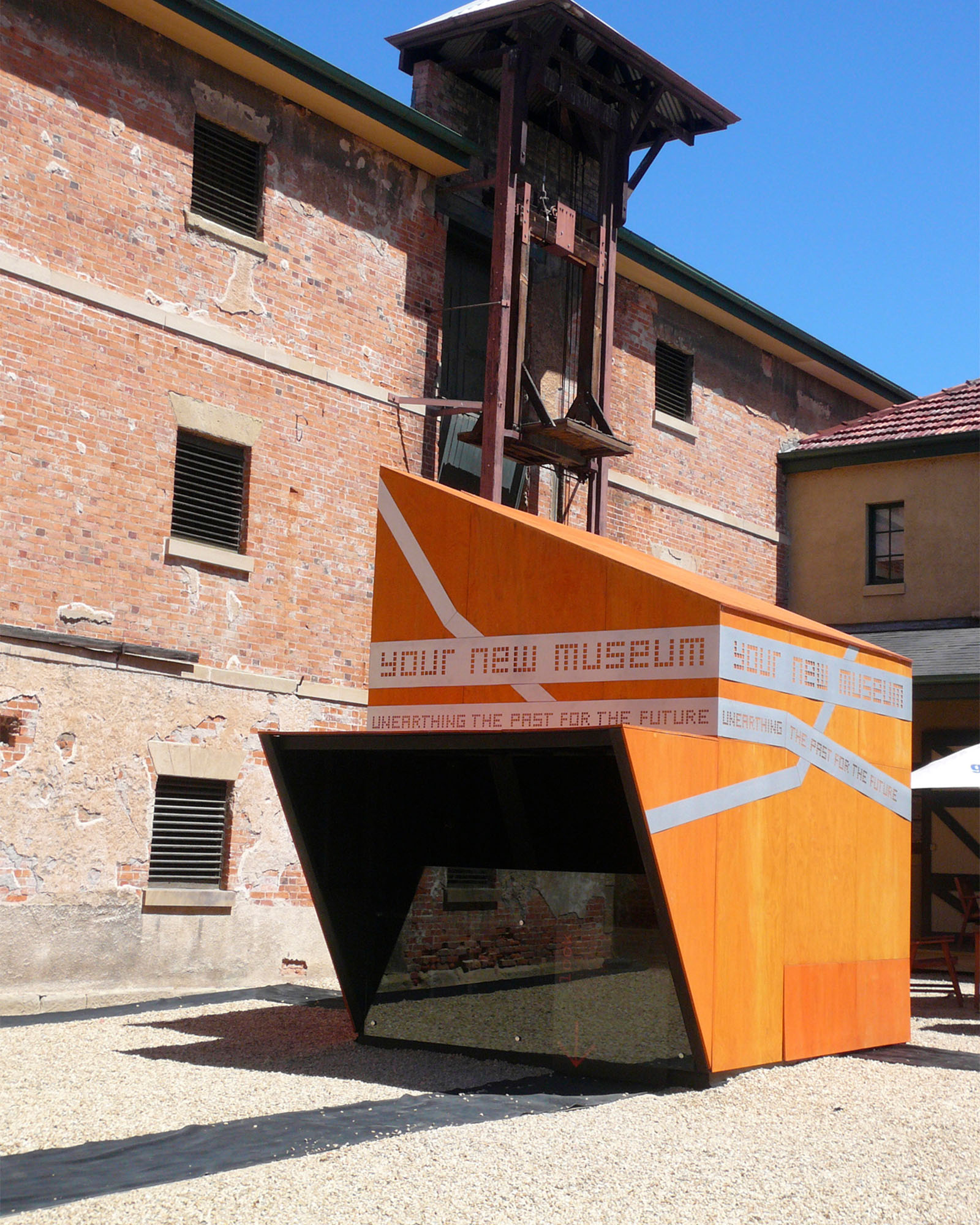 This structure was delivered as part of an exhibition to display the new masterplan for the Tasmanian Museum and Art Gallery (TMAG) developed by TERROIR and Johnson Pilton Walker (JPW). One of the drivers of the masterplan was the opportunity reveal a far greater number of items from the museum’s collection and archaeology from the site to the general public. The purpose of this small building was to explain a second driver – the potential top reveal and interpret the significant archaeology on the site.